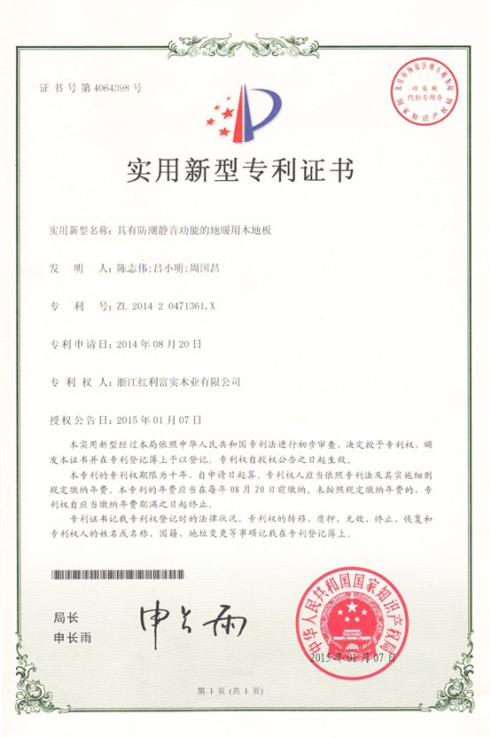 (紅利37℃暖陽(yáng)板專(zhuān)利證書(shū))